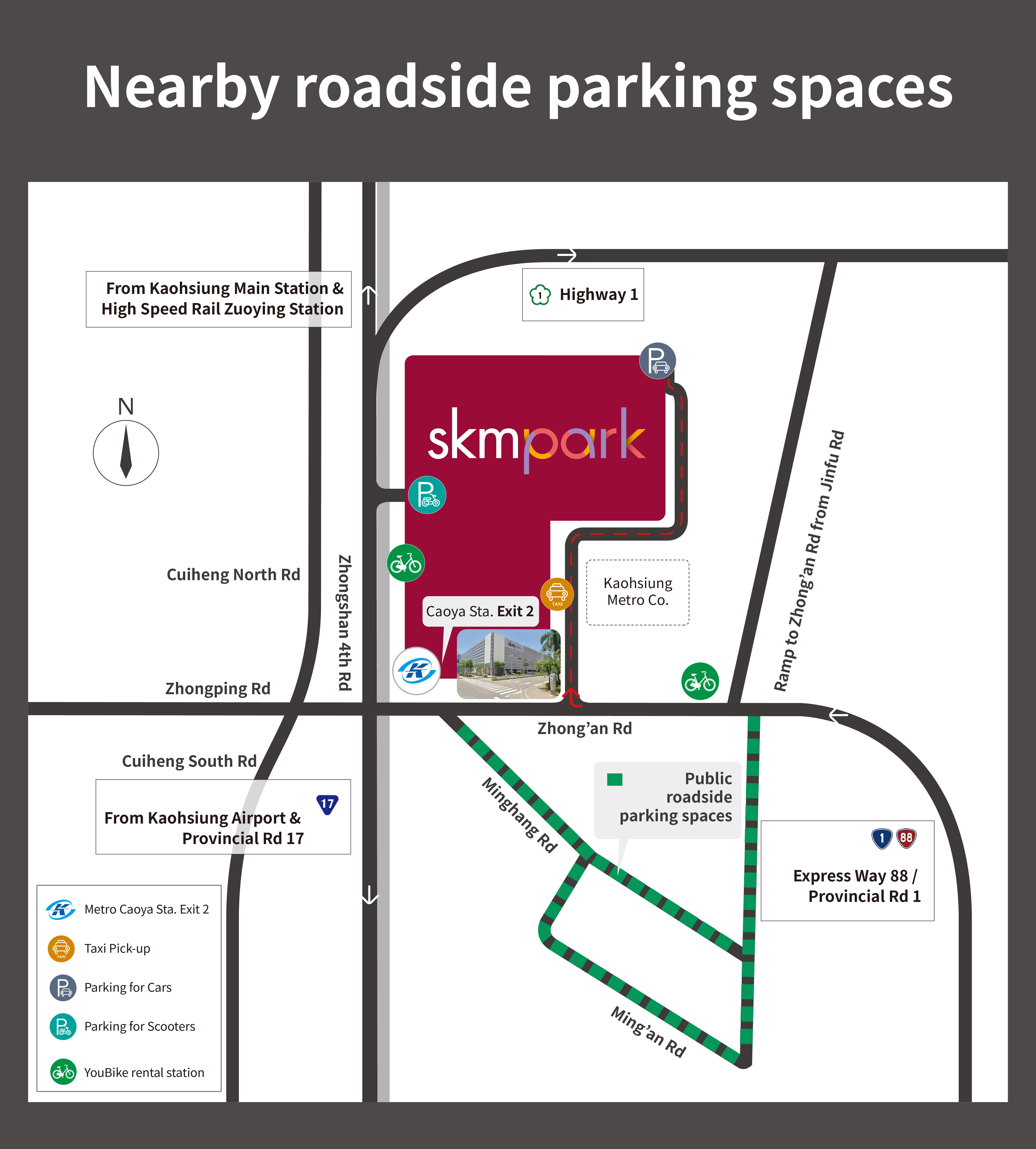 Nearby roadside parking spaces