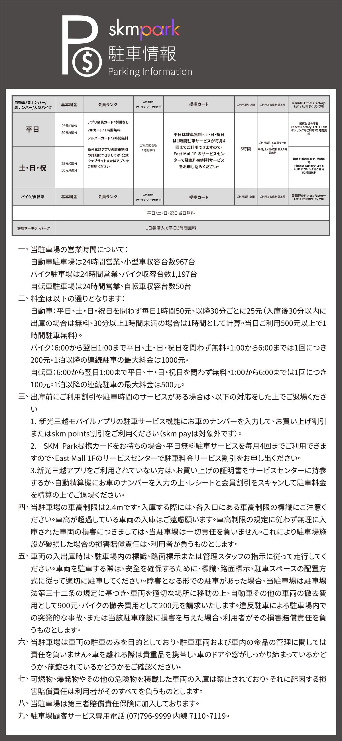 平日.休日 駐車料金1時間無料サービス