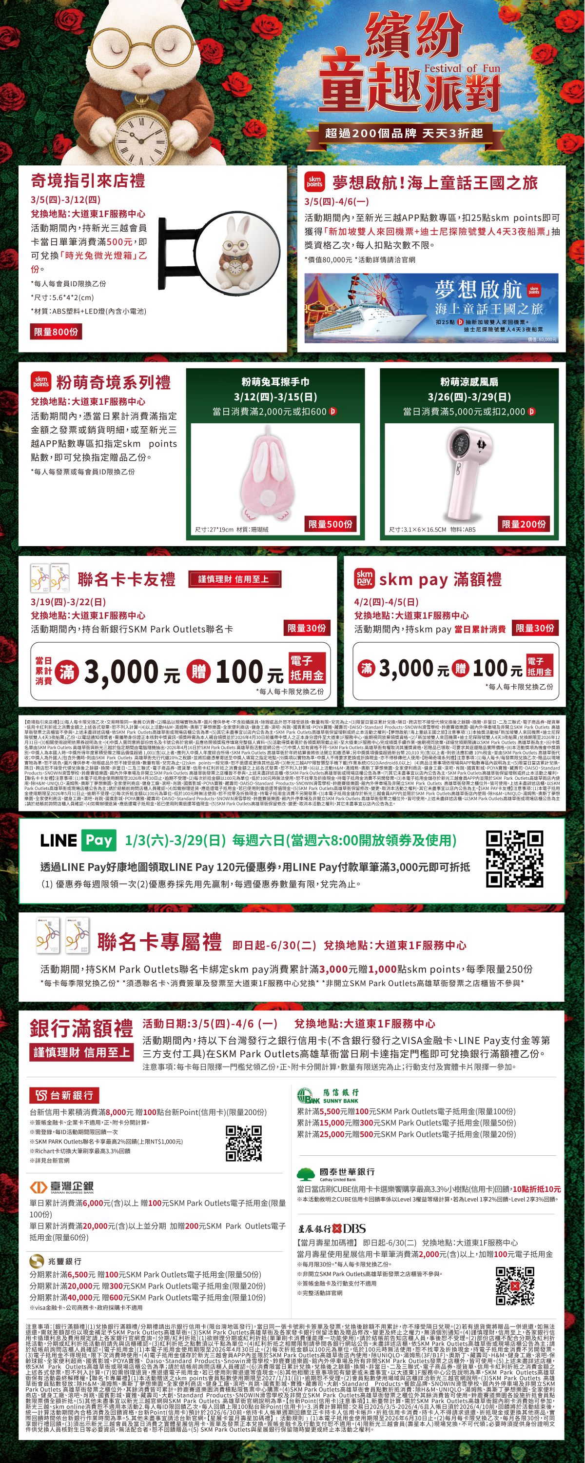 3/5(四)-4/6(一) 童話郵輪之旅、時光兔周邊、電子抵用金...等好禮等你來發現!